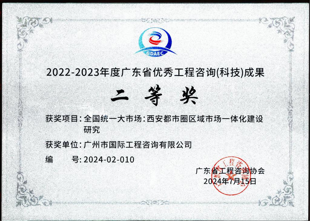 2022-2023年度廣東省優(yōu)秀工程咨詢(科技)成果二等獎(jiǎng)(西安都市...
