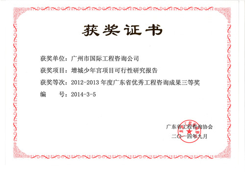 《增城少年宮項目可行性研究報告》獲2012-2013...