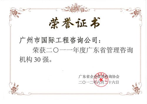 2011年度廣東省企業(yè)管理咨詢協(xié)會(huì)30強(qiáng)
