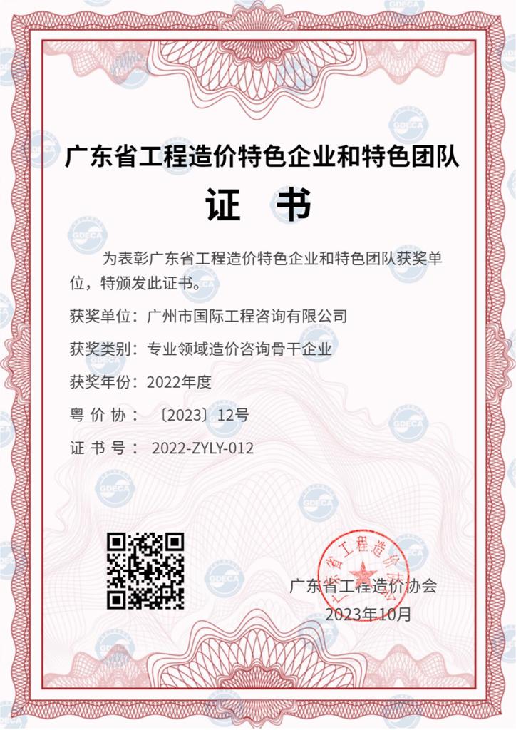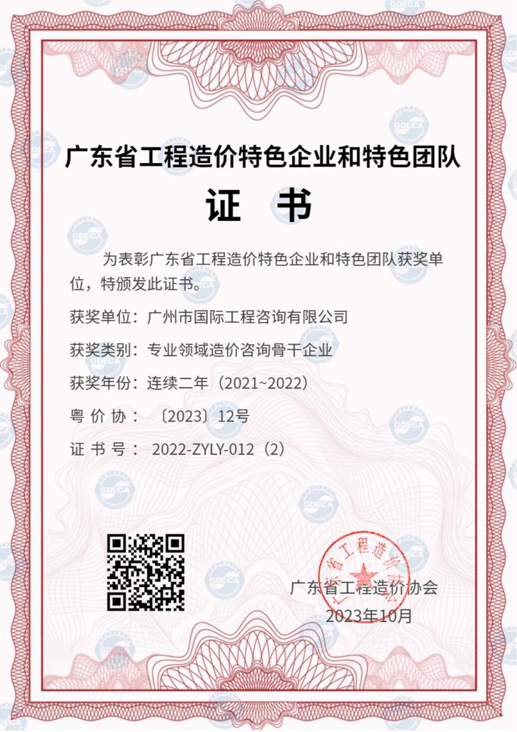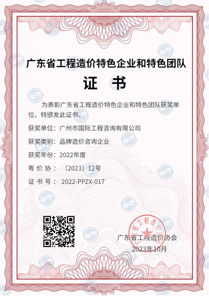 2022年度廣東省品牌造價(jià)咨詢企業(yè)證書