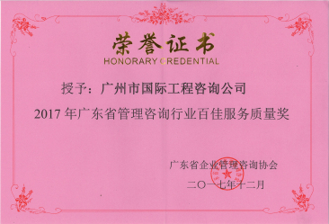 2017年廣東省管理咨詢行業(yè)百佳服務(wù)質(zhì)量獎