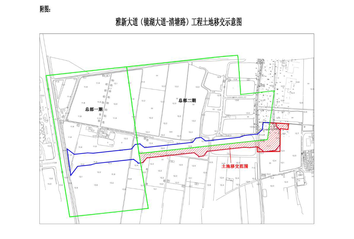 雅新大道(鏡湖大道北-清塘路)土地征收范圍圖(紅色范圍)