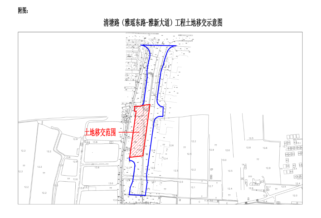 清塘路(雅瑤東路-雅新大道)土地征收范圍圖(紅色范圍)