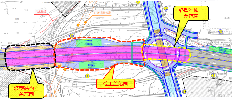工程概況:廣深高速改造長(zhǎng)度2.45km,道路由現(xiàn)狀雙向6車道擴(kuò)建為雙向10車道,包含拆除橋梁783.8m/1座、小橋10.36m/1座;新建橋梁828.6m/2座,拼寬28.3m/2座;新建匝道長(zhǎng)2.762km,包含拆除大橋963.2m/4座,新建橋梁511.2m/2座,收費(fèi)站4處。地方路改造2.948km(其中開(kāi)創(chuàng)大道主線長(zhǎng)1.45km,單側(cè)輔道長(zhǎng)1.498km),主路(雙向6車道)下沉式隧道870m/1座;輔道為雙向6車道,兩側(cè)設(shè)置慢行系統(tǒng)。立交改造隔音降噪上蓋范圍暫定為開(kāi)創(chuàng)大道以北,主線兩端過(guò)渡段為主線橋梁起終點(diǎn),上蓋面積約69741.4㎡,其中鋼筋砼結(jié)構(gòu)面積約48753㎡,鋼結(jié)構(gòu)面積約20988.42㎡。