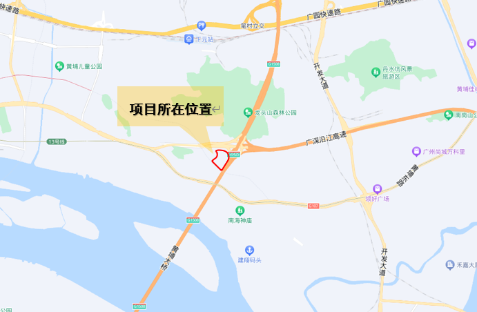 本項目位于廣州市黃埔區紅山街道廣州冶煉廠地塊,廣深沿江高速與廣澳高速交叉口西南處。