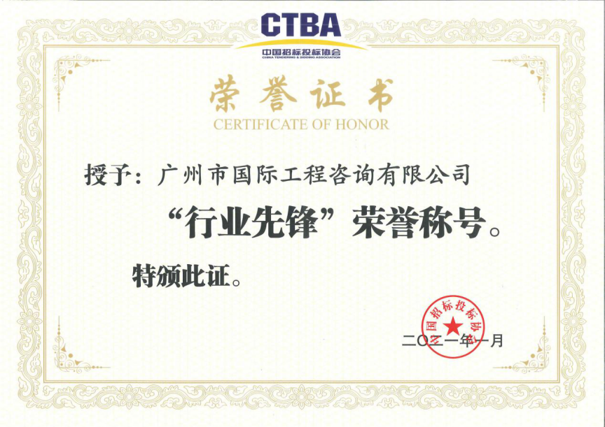 經中國招標投標協會第二屆第十五次理事會審議通過,《招標投標法》實施20周年暨中國招標投標協會(以下簡稱“中招協”)成立15周年之際,中招協印發《關于向有關會員單位授予“行業先鋒”稱號的決定》,向在推動行業制度建設、行業健康有序發展和支持中招協成長中發揮重要作用的有關會員單位授予“行業先鋒”稱號,廣州市國際工程咨詢有限公司名列其中,獲得授予表彰。